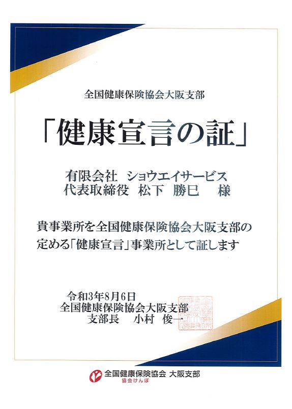 私たちショウエイ保険サービスは、健康経営優良法人取得へ向けて申請中です。